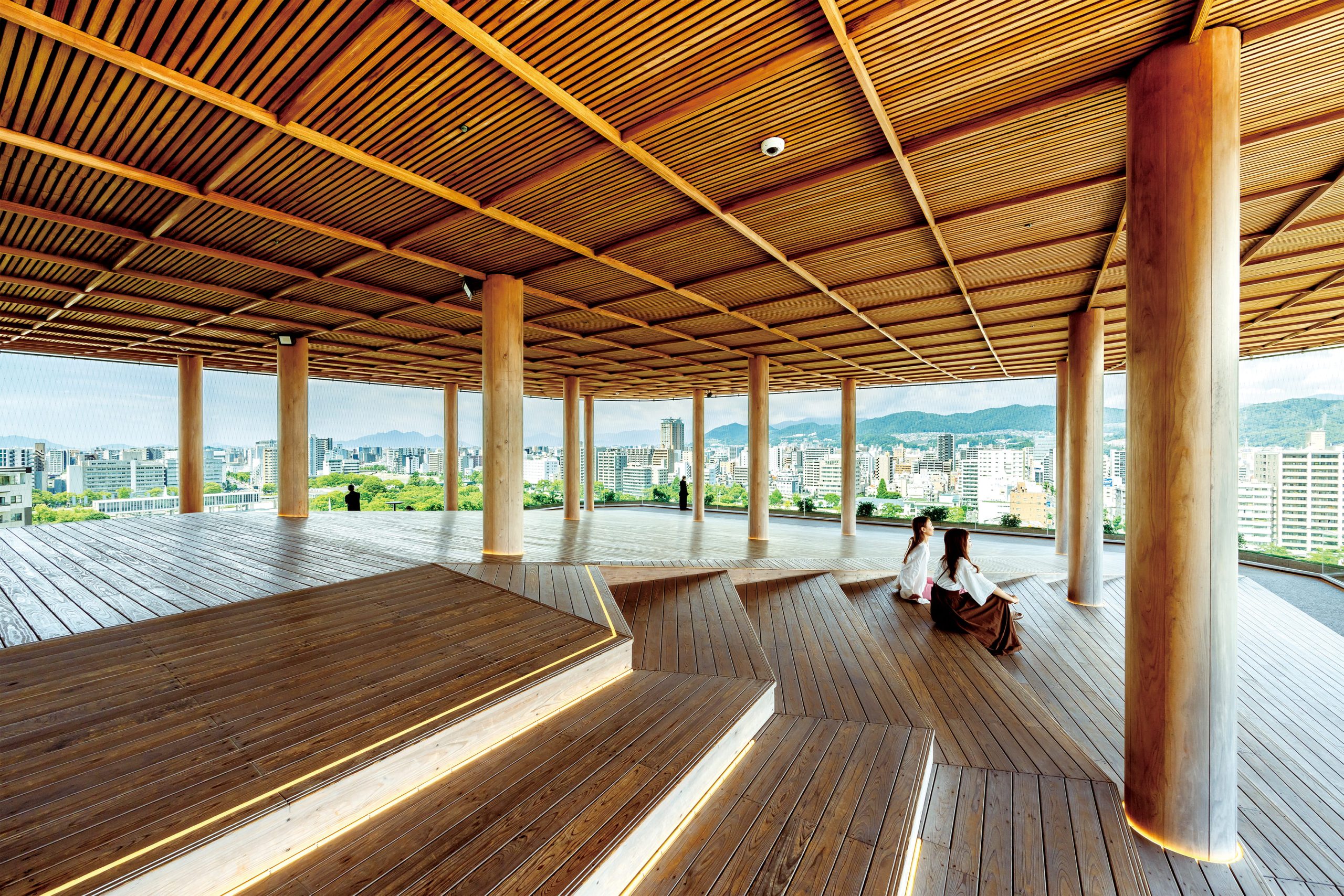 広島の過去と現在、未来を一同に望むことができる唯一無二の空間。ウッドデッキの屋上展望台から広がる絶景、折り鶴を投じる“おりづるの壁”、そしてご当地みやげが充実する物産館やここだけのカフェメニューも楽しめます。